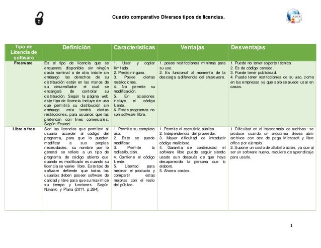 Tabla Comparativa Acerca De Los Diversos Tipos De Licencias