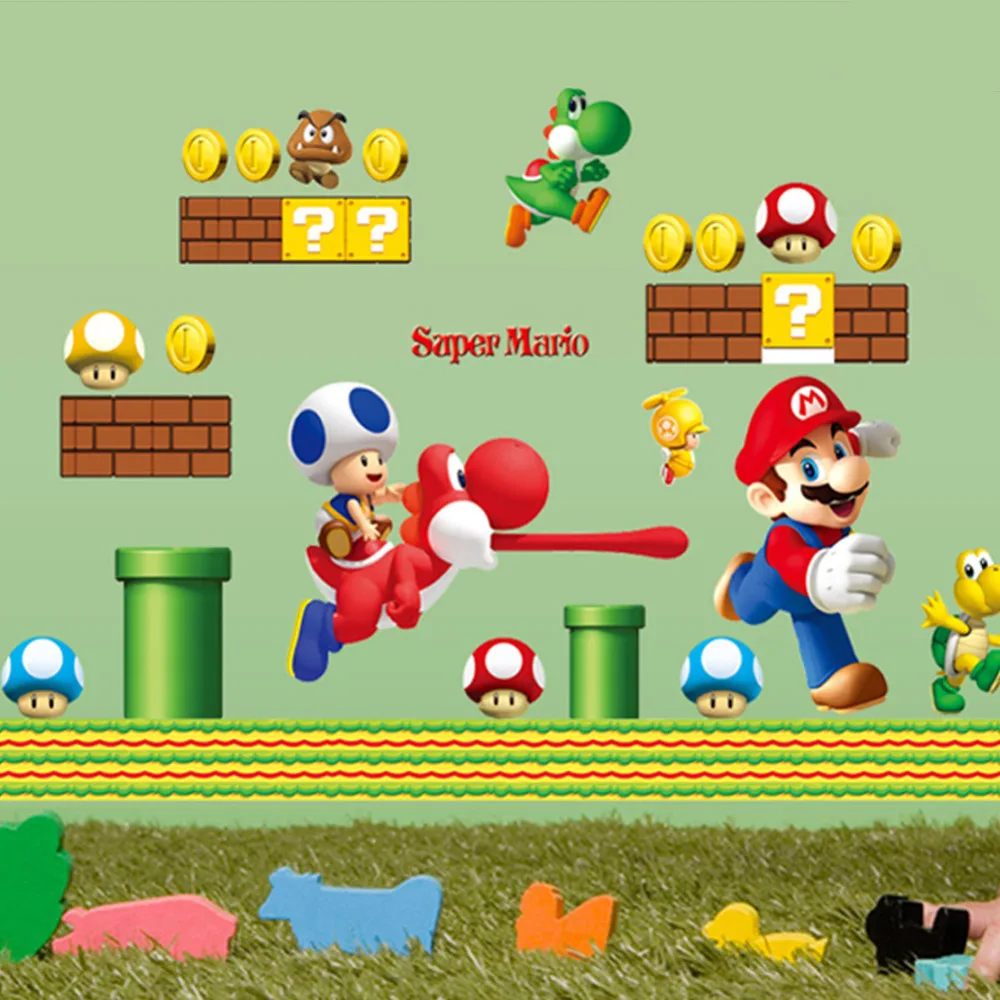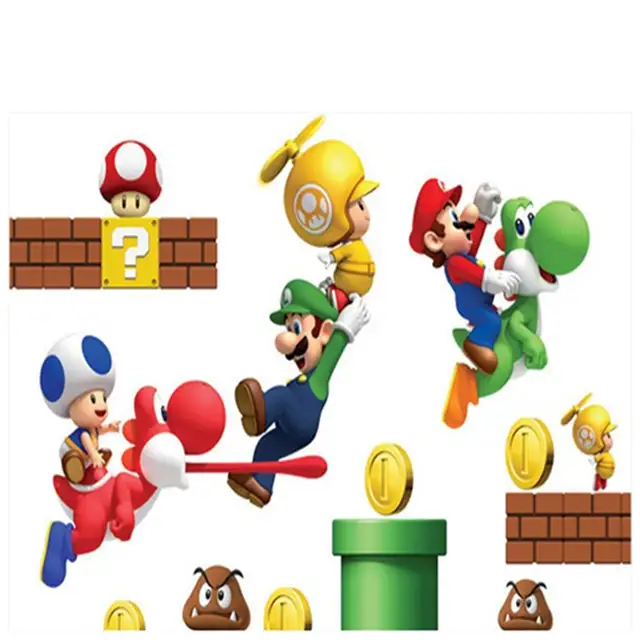 Children Favorite Game Wall Decals Super Funny Mario Anime 3d Vinyl Stickers Kids Room Nursery Decoration Cartoon Poster 45 60cm
