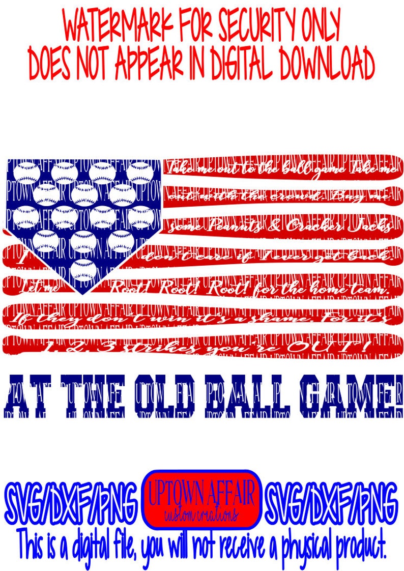 Take Me Out To The Ball Game Flag Lyrics Song Baseball Svg Png Dxf Digital Cut File