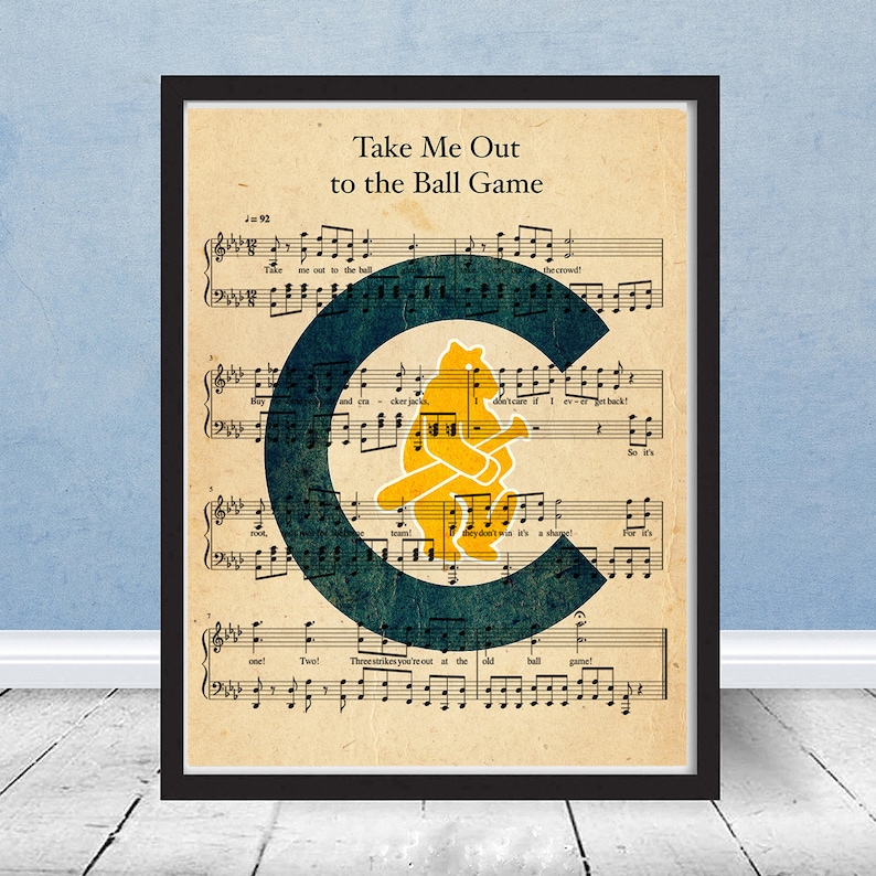 Chicago Cubs Take Me Out To The Ball Game Lyrics Sheet Music Vintage Logo Custom Art Print Gift Wrigley Field