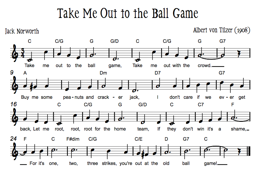 Take Me Out To The Ball Game Words Jack Norworth Music