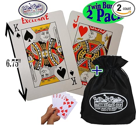 Matty S Toy Stop Large Novelty Playing Cards 6 75 X 4 75 Twin Set Bundle With Bonus Storage Bag 2 Pack