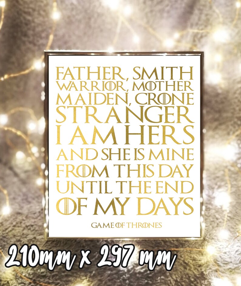 Game Of Thrones Wedding Vows Quote 8x10 11x14 18x24 Instant Download Digital File Game Of Thrones Quote Games Of Thrones Print