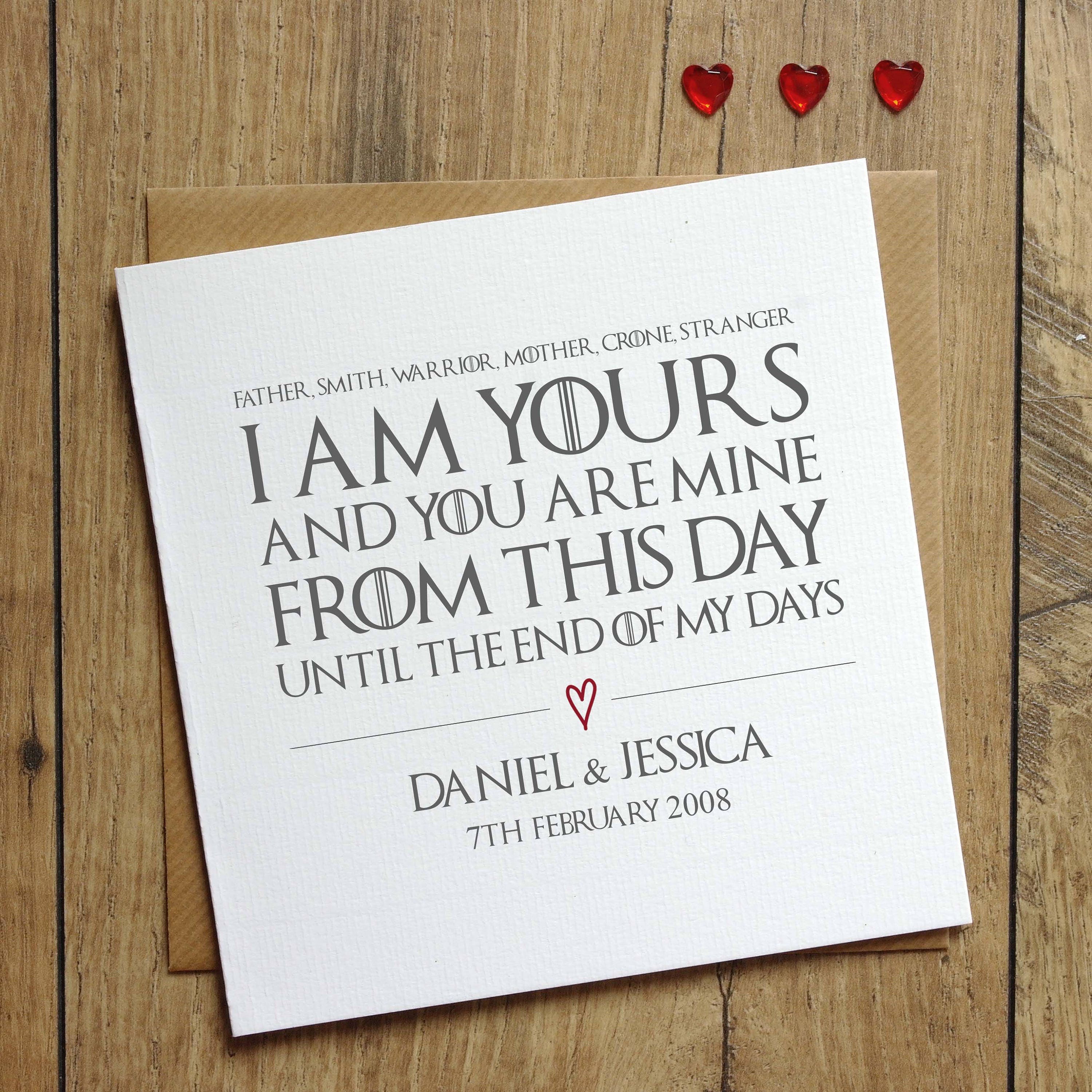 Game Of Thrones Wedding Vows Card 1st Anniversary Card Engagement Card Personalised Wedding Card Valentines Day Card Paper Anniversary